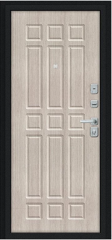 Надежная входная Дверь Браво Мило МФ/BChrome Букле черное/Cappuccino Melinga премиум класса по цене 33 571 руб. Большая толщина стали защитит от проникновения в ваш дом, квартиру или коттедж. Используется очень качественная фурнитура: замки, цилиндры, ручки, защелки. Покрытие и отделка двери изготовлено под внимательным контролем производителя. Дверь имеет долгий срок службы и гарантию.